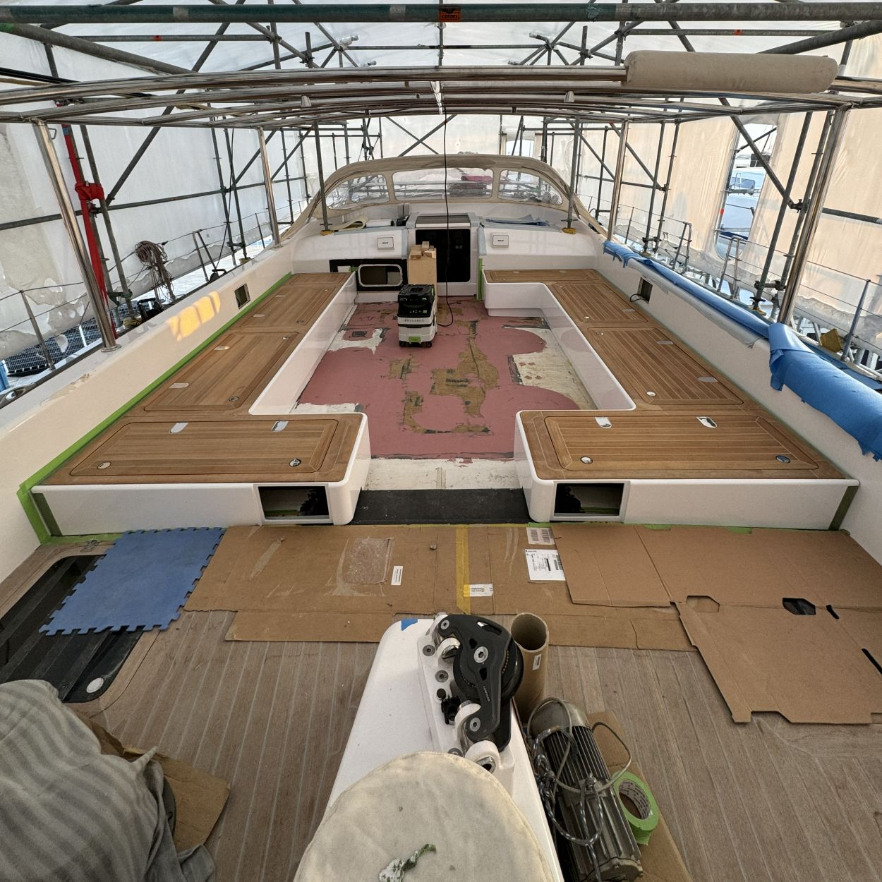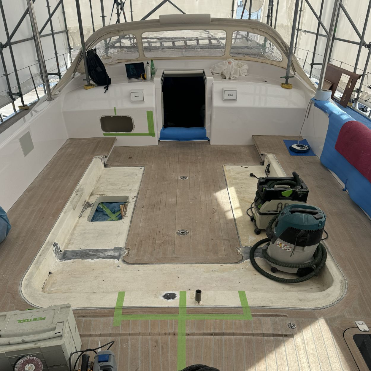Im Rahmen dieses Projekts wurde das Cockpit einer Segelyacht vollständig neu gestaltet. Die einzelnen Cockpit-Elemente wurden nach Kundenwunsch konstruiert, gefertigt und passgenau montiert, um Ergonomie, Funktionalität und Design harmonisch zu vereinen.